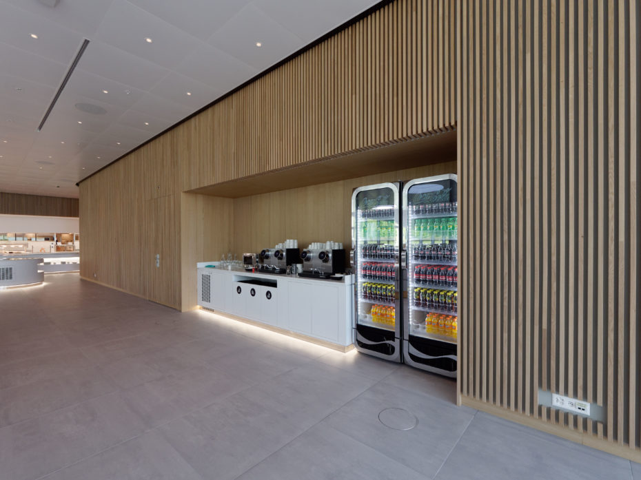 Ce vaste intérieur allie parfaitement lieux de détente et de travail. Confectionnés sur-mesure, les cuisinettes, les cafétérias, le mobilier habillent les nombreux espaces récréatifs. Aux entrées et points d’accueil, de luxueux bureaux de réception s’intègrent joliment à l’architecture intérieure.